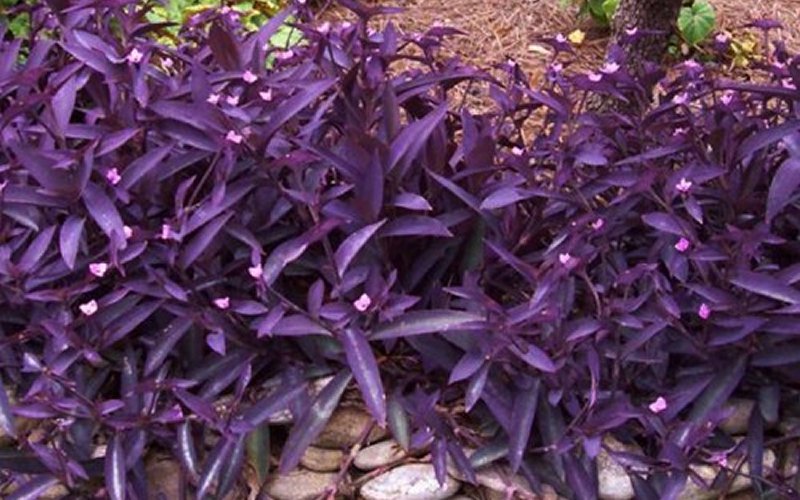 La niña en barco [Tradescantia pallida] tiene un color morado muy atractivo, además sus pequeñas flores color rosado son la combinación perfecta en una planta.