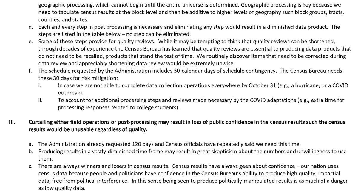 13. Career officials at Census Bureau managed to flesh out a new plan for a shortened #2020Census schedule despite their recommendations against doing so. Michael Thieme, an asst director in charge of #2020Census systems & contracts, noted the "great work under high pressure."