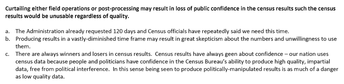 5. The internal document by Ben Page, the Census Bureau's chief financial officer, emphasized that additional time to review the #2020Census results is "essential to ensuring an accurate and complete count" especially in light of delays caused by COVID-19: assets.documentcloud.org/documents/7213…