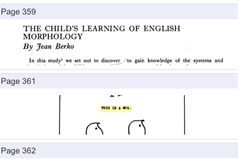 Even if we *still* ignored that, the US Dept of Education ran The Research Instrument Project (TRIP), which compiled many newer research methods specifically to make them “readily available”. And Berko’s Test of Morphology with wug images was published in a 1975 report. 10/