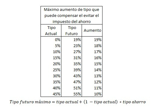 Eso quiere decir que habrá una subida de tipo máxima que pueda compensarse por evitar el impuesto del ahorro.