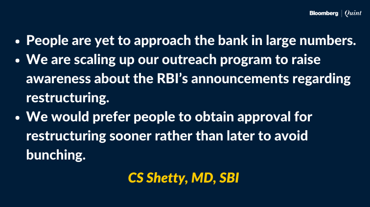 SBI will charge a 0.35% per annum additional interest for customers choosing to restructure retail loans. @PallaviNahata