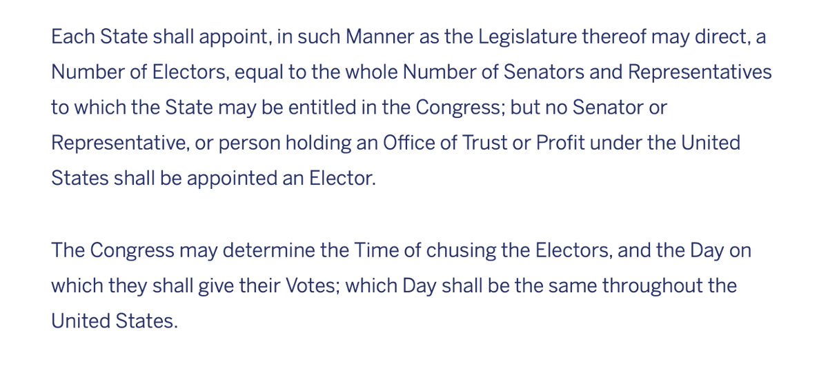 ..neither requires Constitutional amendments. Court will have to be expanded first because otherwise politicians in robes Alito and Thomas will lead a strike down of electoral college rule. THAT law perfectly matches structure of Article II, Section 1, Clauses 2 and 3, which.../2
