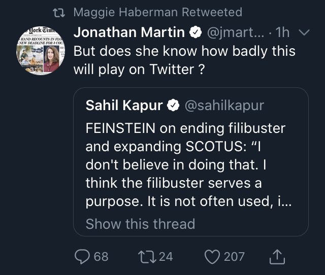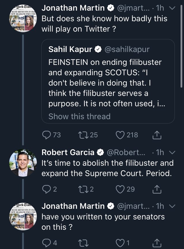 Hey @nytimes, huge numbers of Democrats feel very passionately about both the filibuster and the SCOTUS situation. I am very troubled that your political reporters appear to believe this is an absurd and childish position.