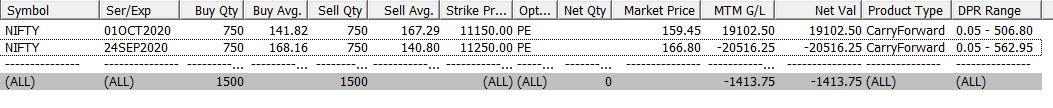 Sold 11250 PE, 24 Sep 2020 @140.80