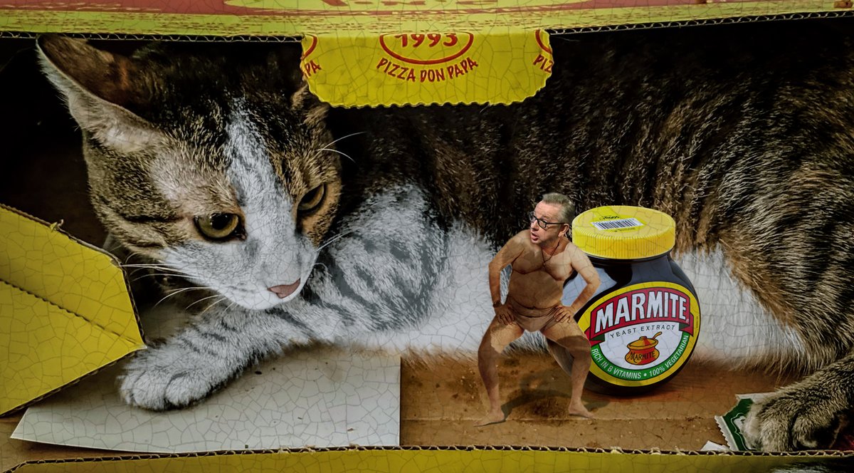 were announced with the destruction of a pinata shaped like Edmund Burke’s head. But I was all the while preoccupied with the presence of Larry the Downing Street cat, stalking among the crusty tissues and discarded y-fronts on Hancock’s kitchen floor. A noise like