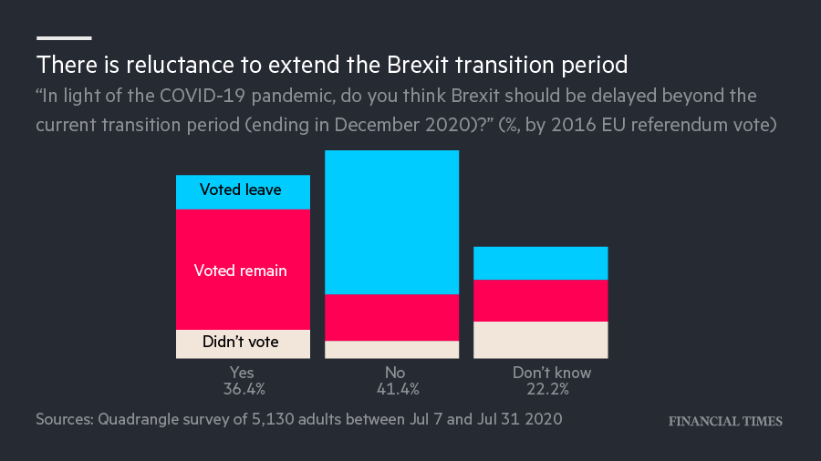 🇬🇧 Even as the Brexit deadline looms at the end of December, and a no-deal divorce looks more likely as trade negotiations stall, 41% of Britons oppose extending the UK’s transition period — including 20% of those who voted Remain in the 2016 EU referendum ft.com/content/c42de5…