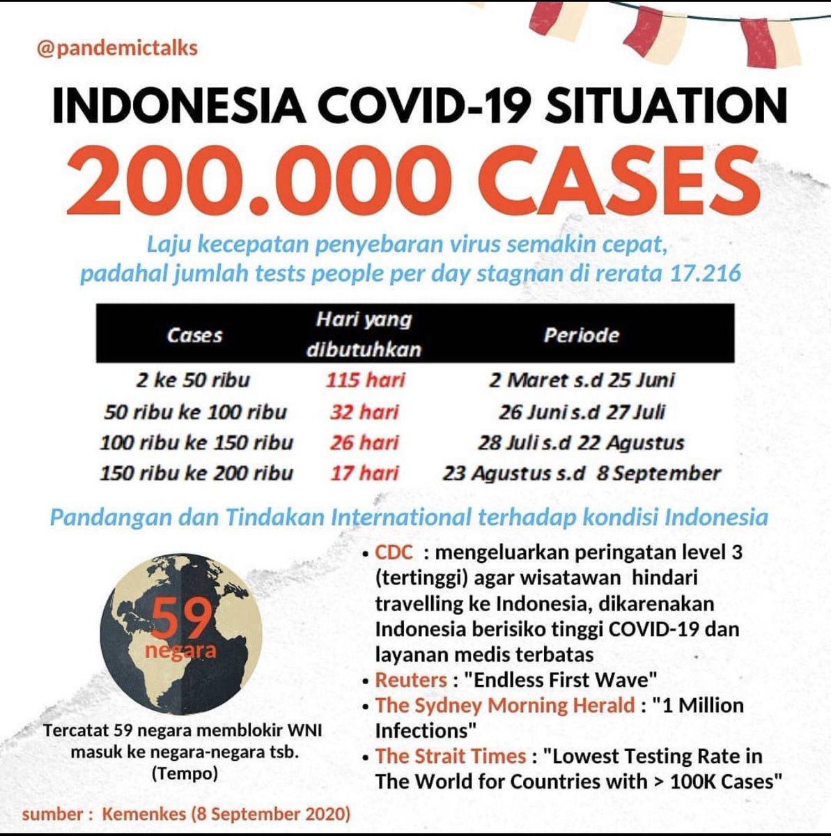 Dari 115 hari, lalu 32 hari, kmudian 26 hari, selanjutnya 17 hari. Dan hari ini tepat 14 hari utk 50ribu kasus baru
