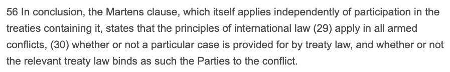 7. All of this invites the question: what are the general principles of law recognized by States via the Martens clause, and what are their contents? Stay tuned.