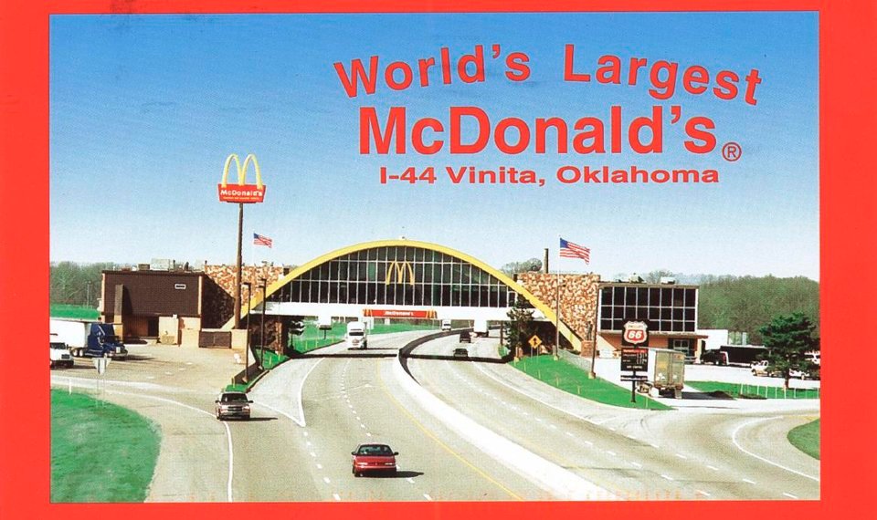built a year after the construction of the will rogers turnpike, this mcdonald's has a unique "glasshouse" design. both a mcdonald's and a phillips 66 gas station occupy this large building, which spans all of the turnpike's lanes. it has been dubbed the "mcoverpass" by locals.