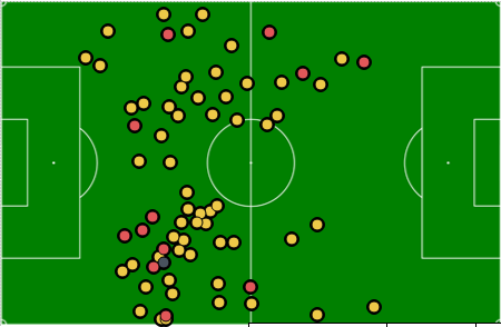 The most impressive thing about our pressing in was the balance of the system. Coming up are 3 pressmaps and look at the symmetry in the left and right halves of the pitch