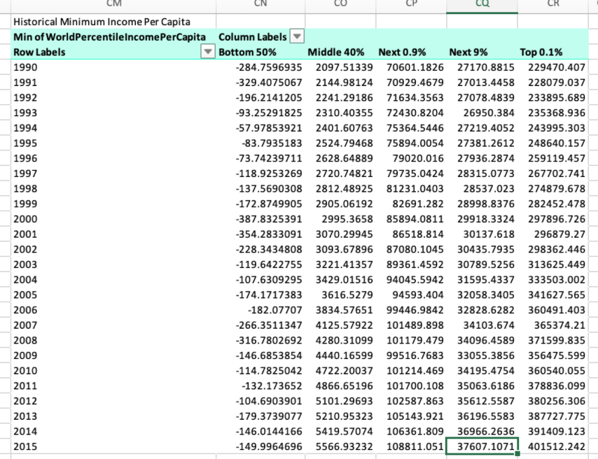 Similarly from their data spreadsheet, the minimum threshold for entering the middle 40% (50-90th percentile of global annual income) grew from $2097 to $5566 (in 2011 dollars) from 1990 to 2015 if I’m interpreting correctly. (10)