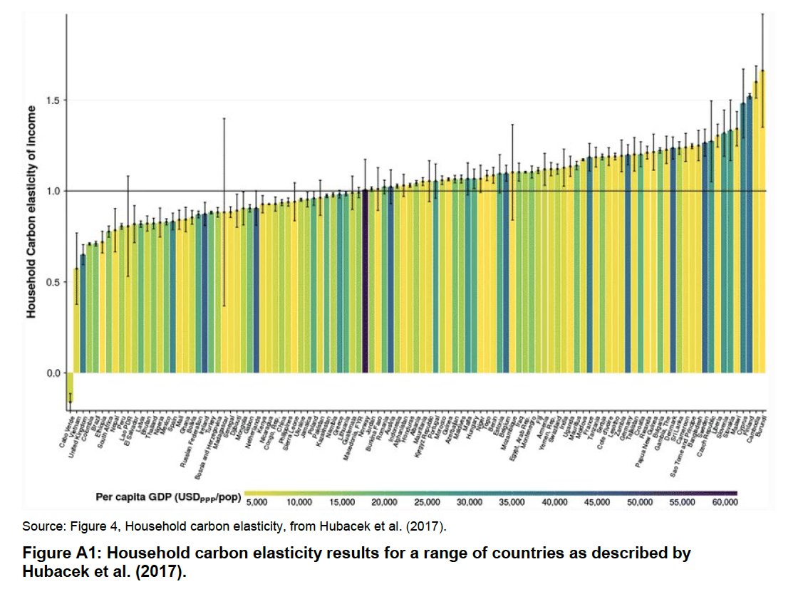 This study would have been more valuable had it considered varying elasticity of emissions with income by country, and also considered emissions contributions based on real income thresholds rather than percentiles. (8)