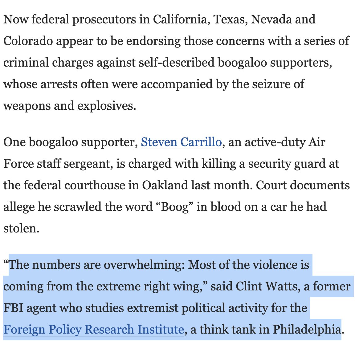 Lastly, Kellerman may be wrong that riots themselves are *explicitly* caused by right-wing agitators, but the worst violence we are seeing during these events (to humans, not property) is arguably coming from the batshit Boogaloo movement: washingtonpost.com/technology/202…