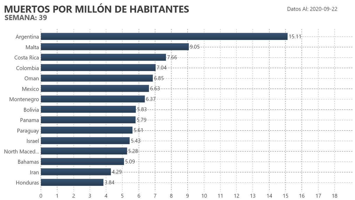 Los países que han sufrido la mayor cantidad de pérdidas humanas son USA seguido de Brasil. México está en el lugar 4 de la métrica.