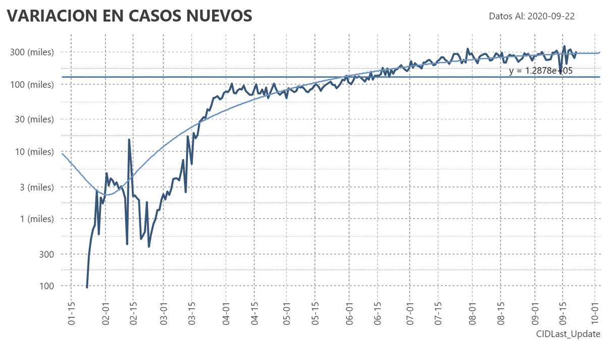 El porcentaje de aumento de casos contra el día anterior fue del 0.66%. Se llegará a 800 mil casos el 14 de Octubre.