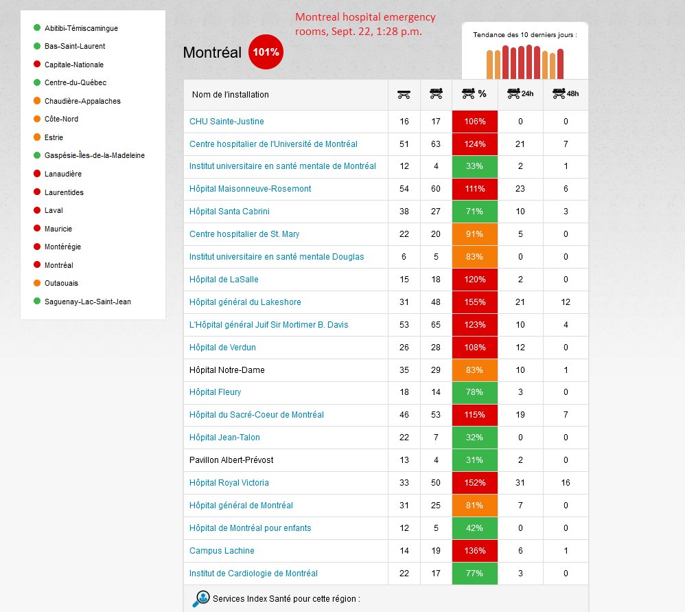 10) The health minister, @cdube_sante, acknowledged Quebec’s health care workers are tired and short-staffed. Among those exhausted are emergency-room nurses. See the ER chart below. So why not let Quebecers themselves contribute by authorizing use of COVID Alert? End of thread.