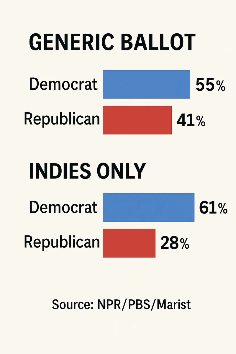 Start with the headline: in the new NPR/PBS/Marist poll, Democrats lead the 2026 generic House ballot 55/41 among registered voters — a D+14 advantage. That’s the biggest Marist has shown for Democrats since 2017 and a massive swing from a 48–48 tie in November 2024.