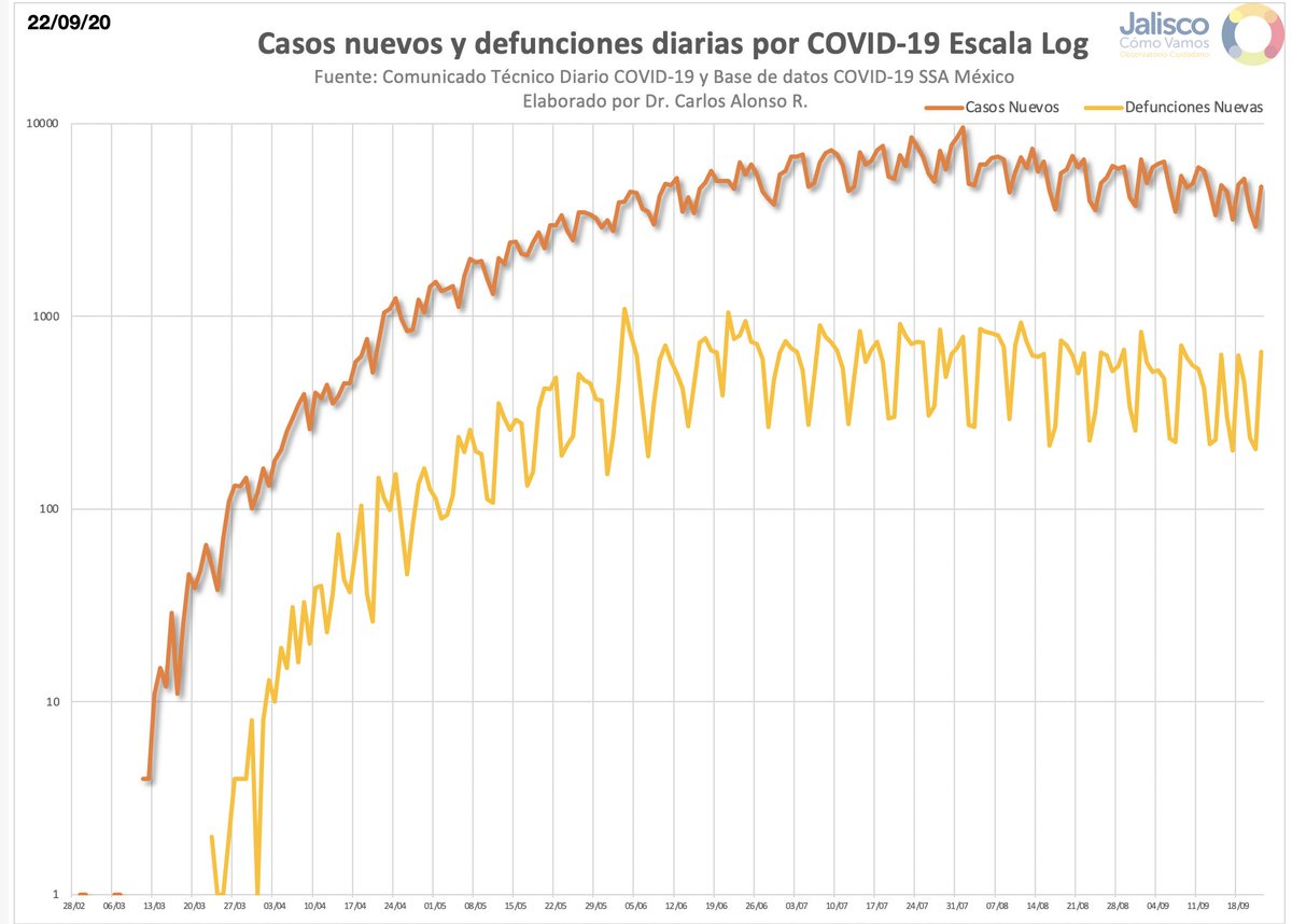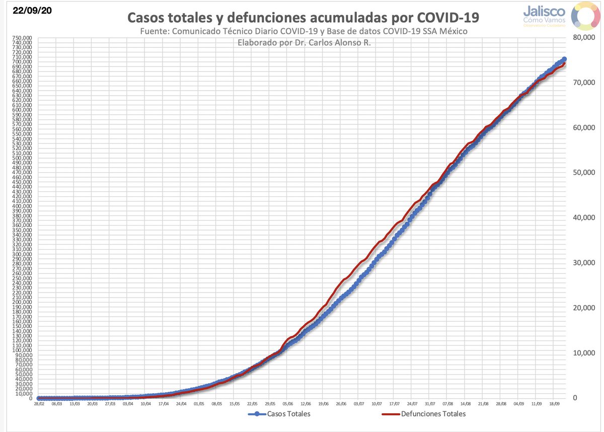 Jalisco: 66,323 confirmados, 7,957 defunciones y 3,760 casos activos. 633 casos y 66 Defunciones más que ayer.