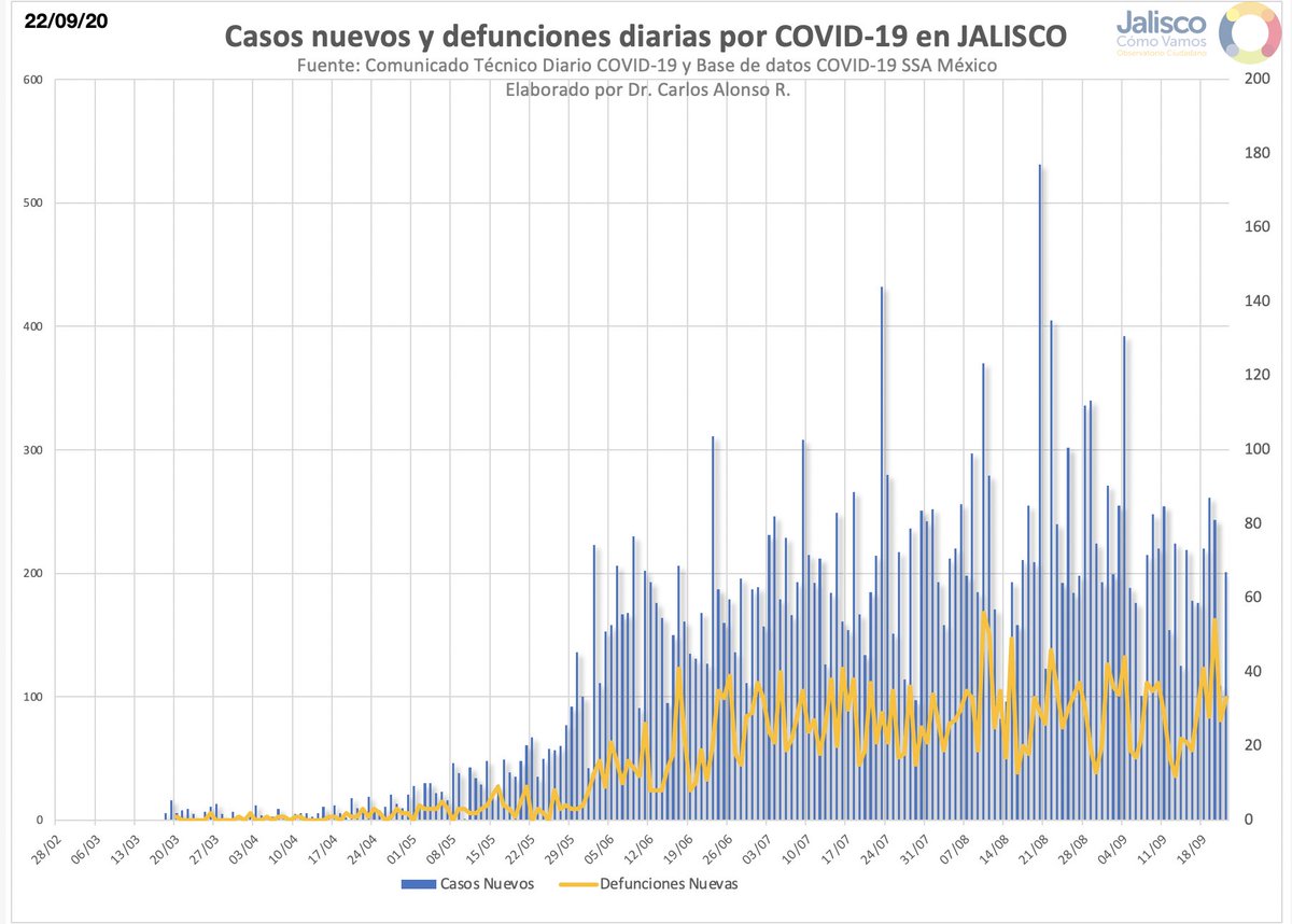 Jalisco: 24,953 confirmados, 3,081 defunciones y 1,373 casos activos. 201 casos y 33 Defunciones más que ayer.