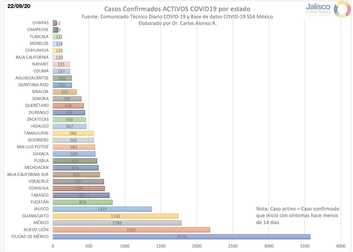 Jalisco se encuentra en el 8vo lugar por casos activos a nivel nacional.