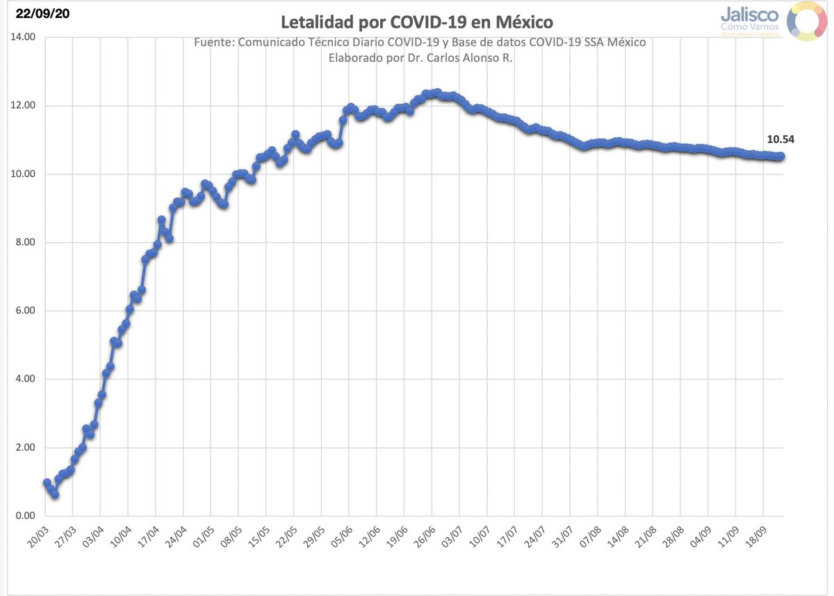 La @SSalud_mx sigue modificando la metodología para calcular los casos activos, unos días contabilizan los casos de los últimos 14 días, otros días solo contabilizan 13 como expliqué en un hilo anteriormente.