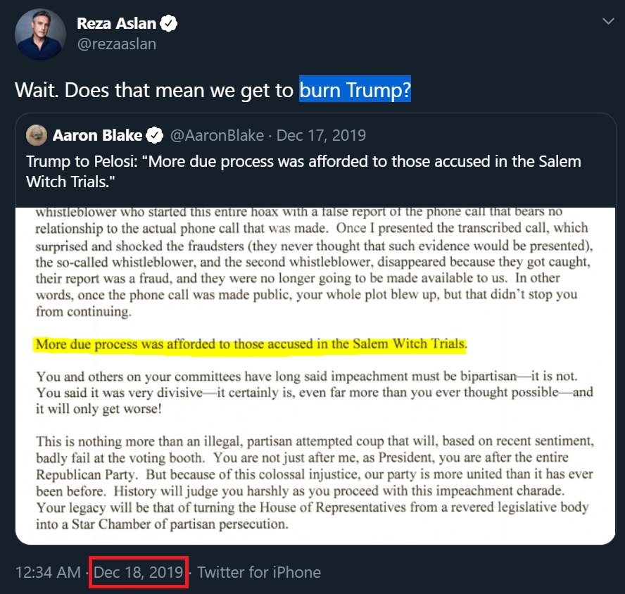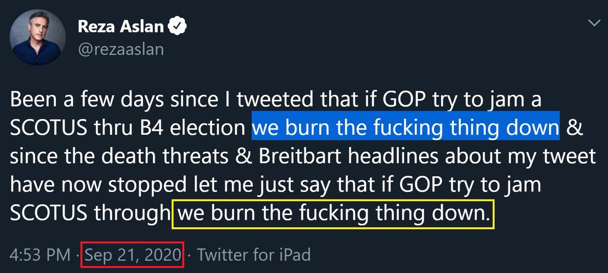Would you not describe @rezaaslan's tweets as such behavior? He has quite a history of threatening to "burn" places down.
