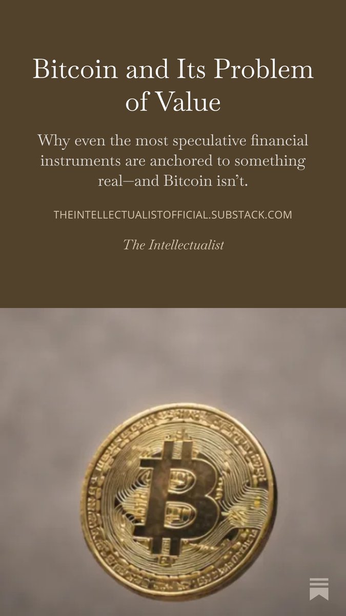 Bitcoin does not sit at the extreme end of this spectrum. It sits outside it, because it is not a claim on ownership, obligation, or any external economic reality. …eintellectualistofficial.substack.com/p/bitcoin-and-…