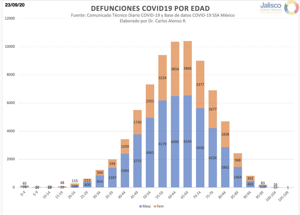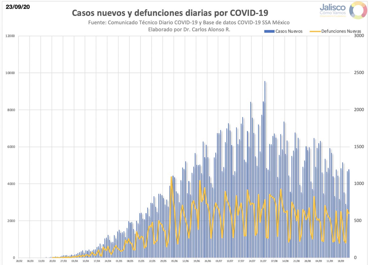 Jalisco: 66,323 confirmados, 7,957 defunciones y 3,760 casos activos. 633 casos y 66 Defunciones más que ayer.
