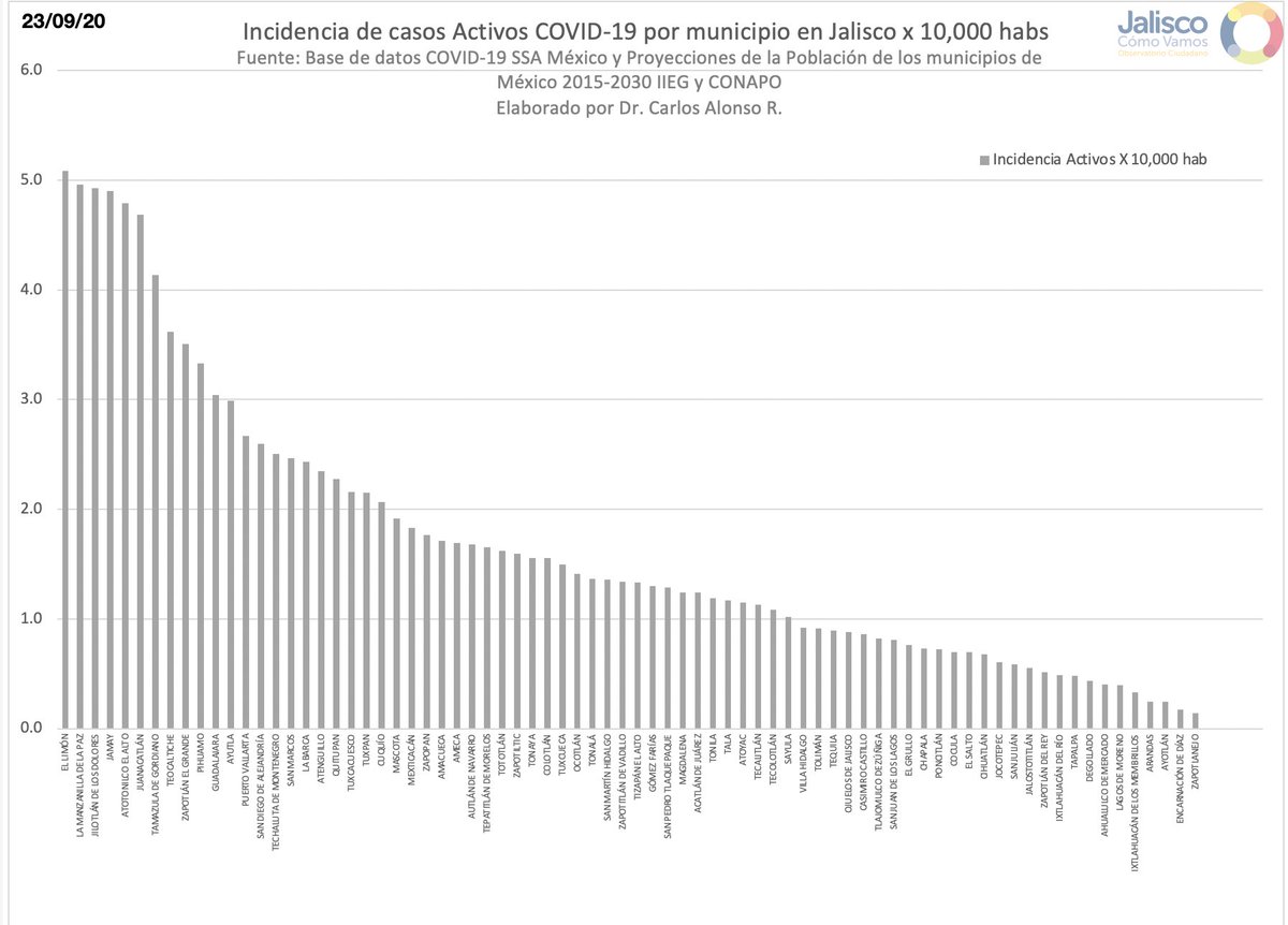 El Limón, La Manzanilla, Jilotlán, Jamay y Atotonilco son los primeros lugares por incidencia de casos activos al día de hoy.