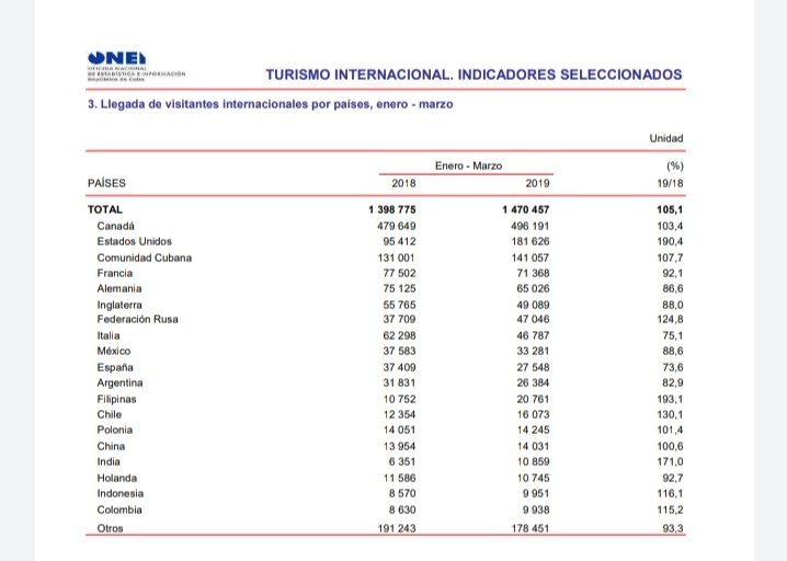 Más arriba se veía el número de Dominicana, que siempre más o menos comparo con Cuba. Los norteamericanos suponen más o menos la mitad de los turistas que recibe, aún así no pasan de 3 millones (eso sí, son de los que más gastan). Aquí los totales del Caribe 5/