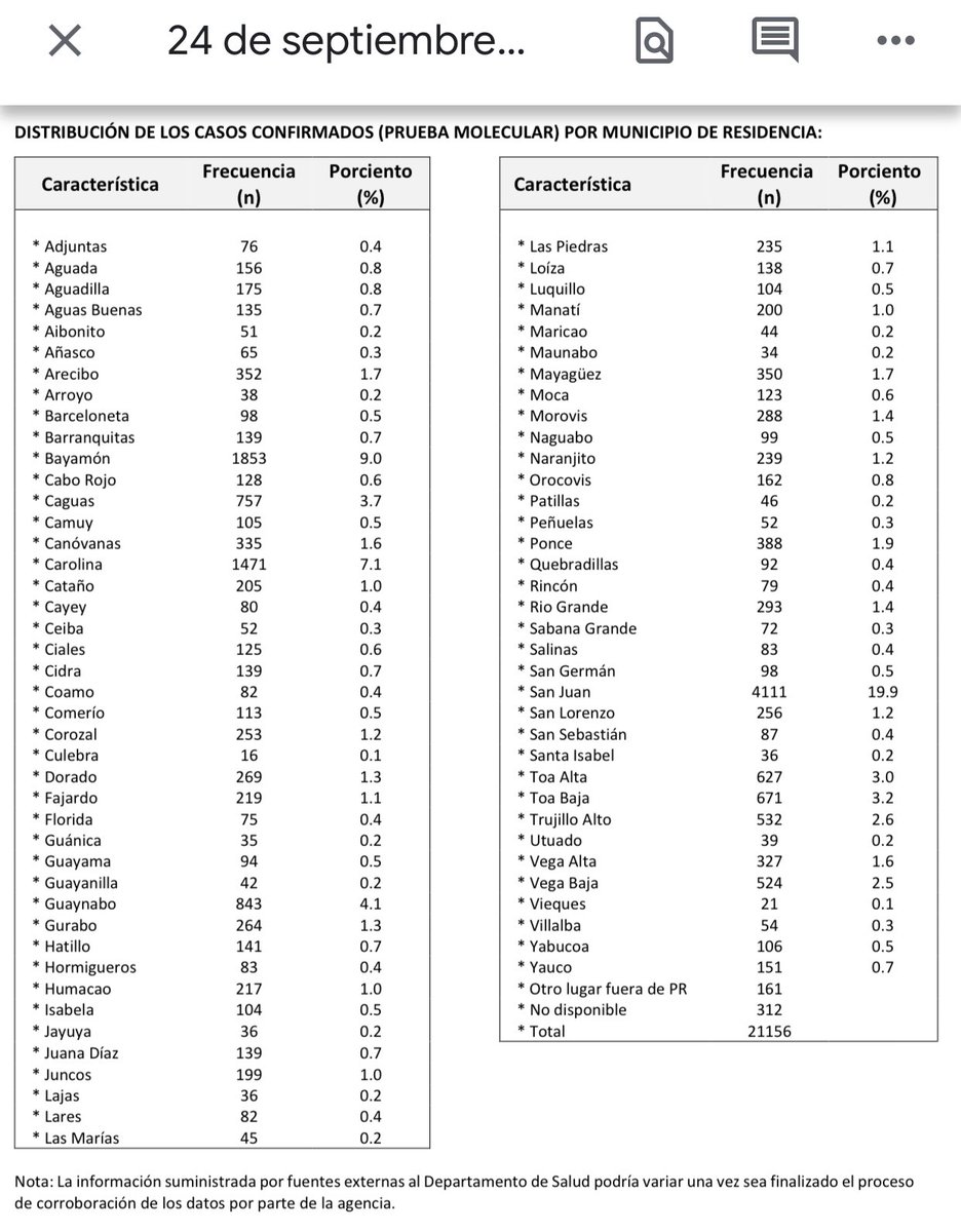 1.) 284 casos confirmados de #COVID19 registrados hoy por el @DeptSaludPR. Muestras del 9 al 23 de septiembre (+19 casos previos, -7 casos duplicados).