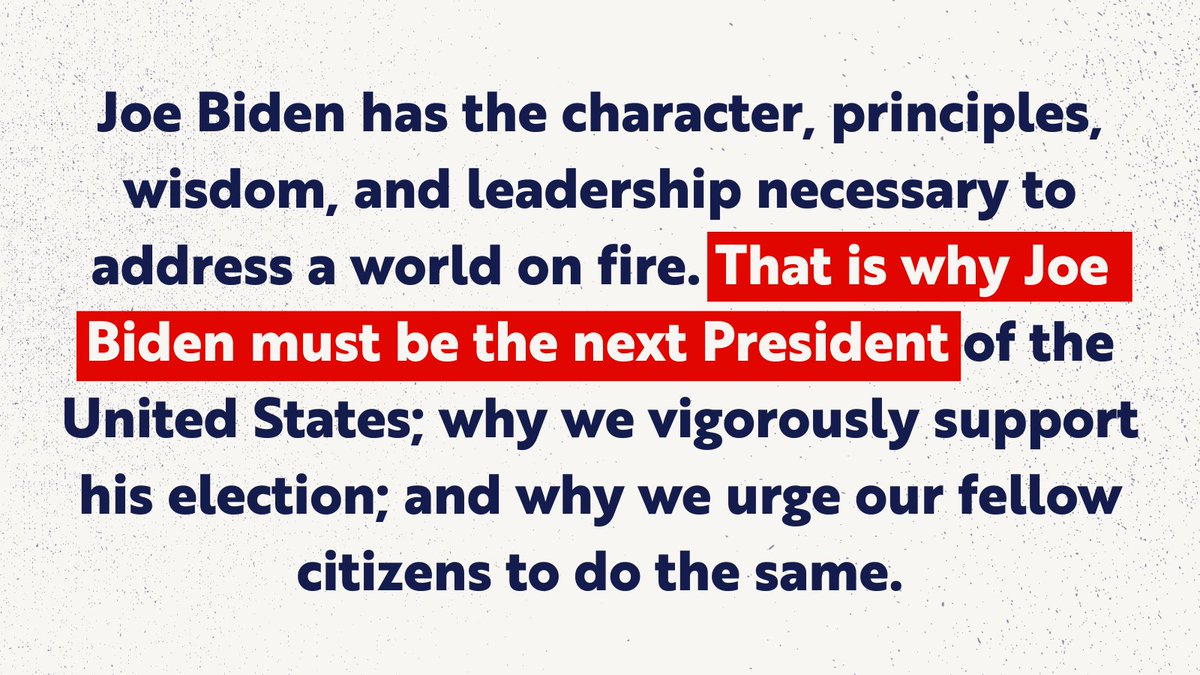 "Joe Biden has the character, principles, wisdom, and leadership necessary to address a world on fire."