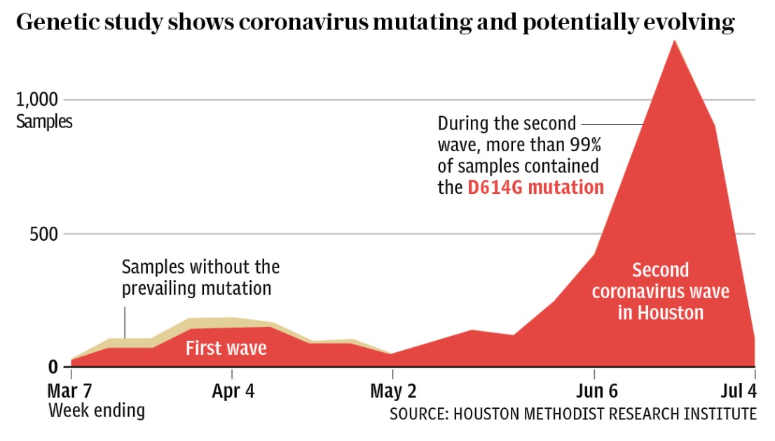 A tiny tweak in the spike protein of the dominant variant switches an amino acid from aspartic acid to glycine. The new mutation appears to be outdistancing all of its competitors