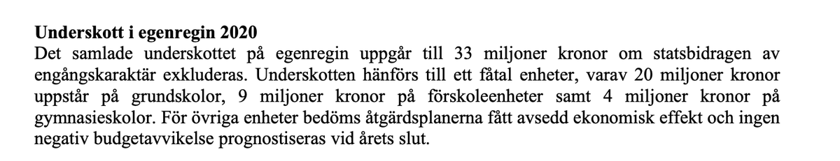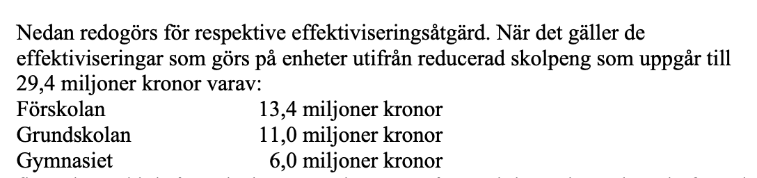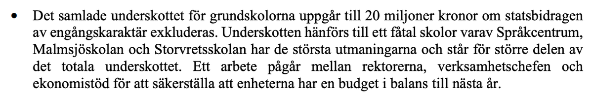 15. Om man bortser från att det kommit mer pengar från staten just i detta Coronaår saknas 20 miljoner för att nå budget i balans, på kommunens grundskolor.