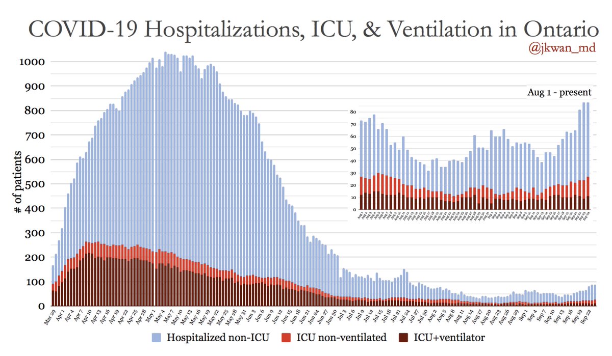 #Covid19Ontario daily cases vs. total current hospitalizations Image