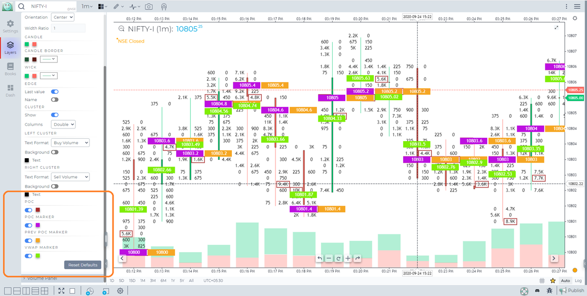 [7/X] Now the same POC and VWAP can also be plotted directly on the Cluster Chart. Use the new controls on the Chart Settings to activate the following: