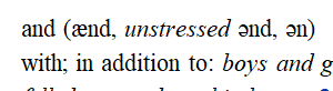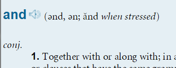 En esa pronunciación débil o no acentuada, aparece esto: ə𝘯𝘥, ə𝘯. El símbolo ə representa un sonido muy común en inglés que yo defino como una e española sin ganas.