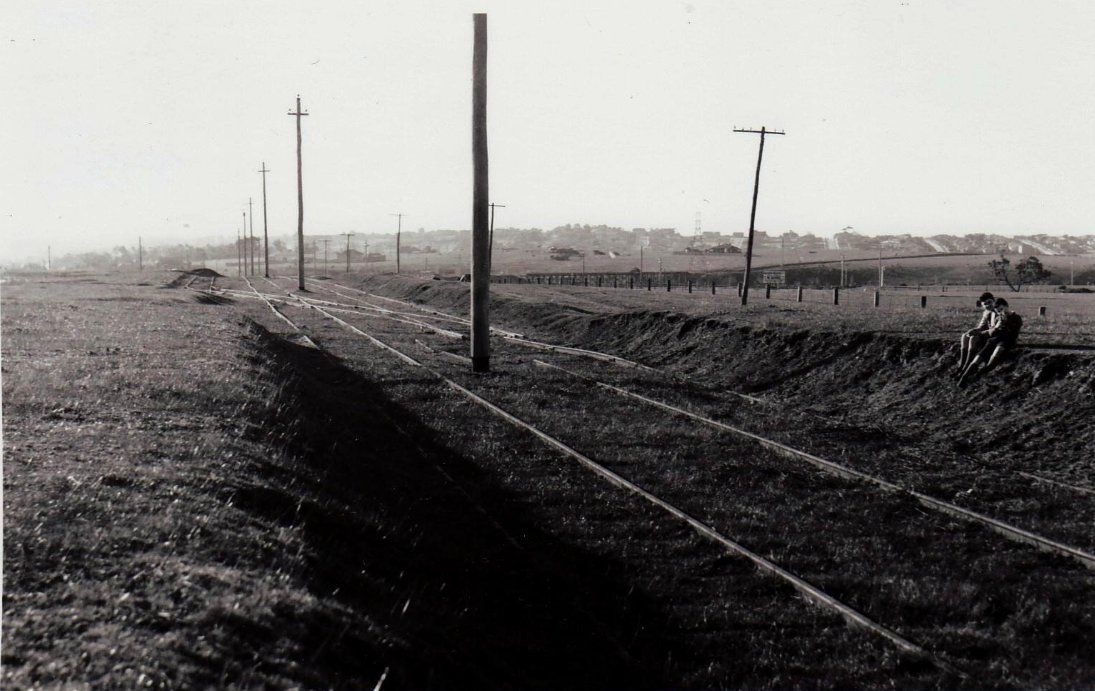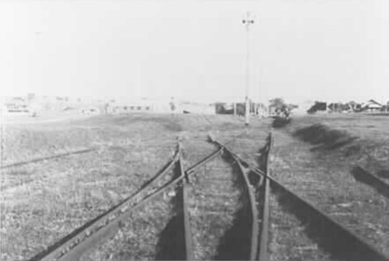 Remains of Waverley Road station in 1940. Looking north towards Ashburton, the track on the left is the abandoned line to Burnley.