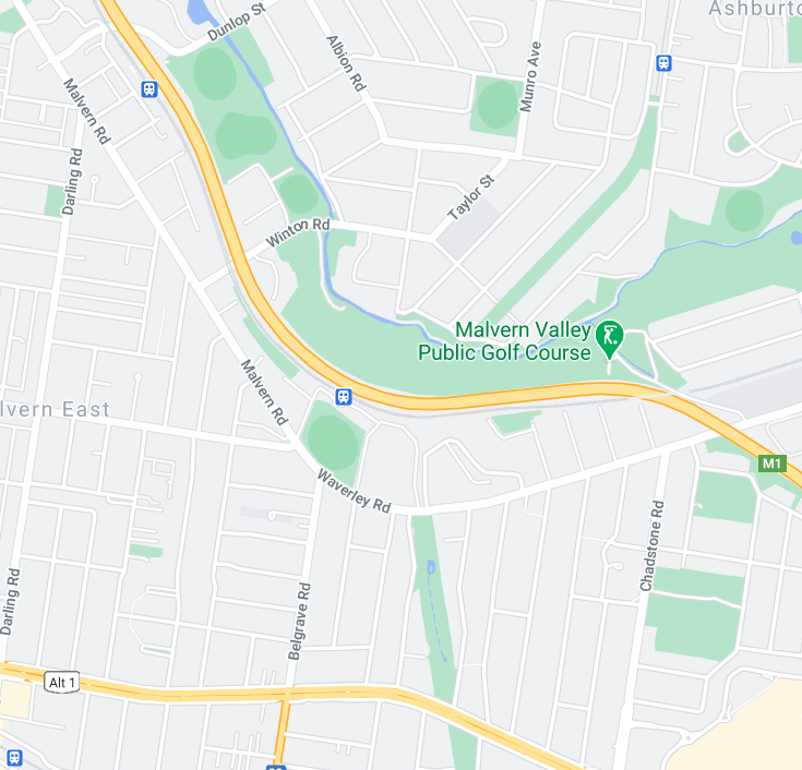 Former outer circle line, Black Bridge and the connection to Darling can be seen, as well as the Glen Waverley railway.