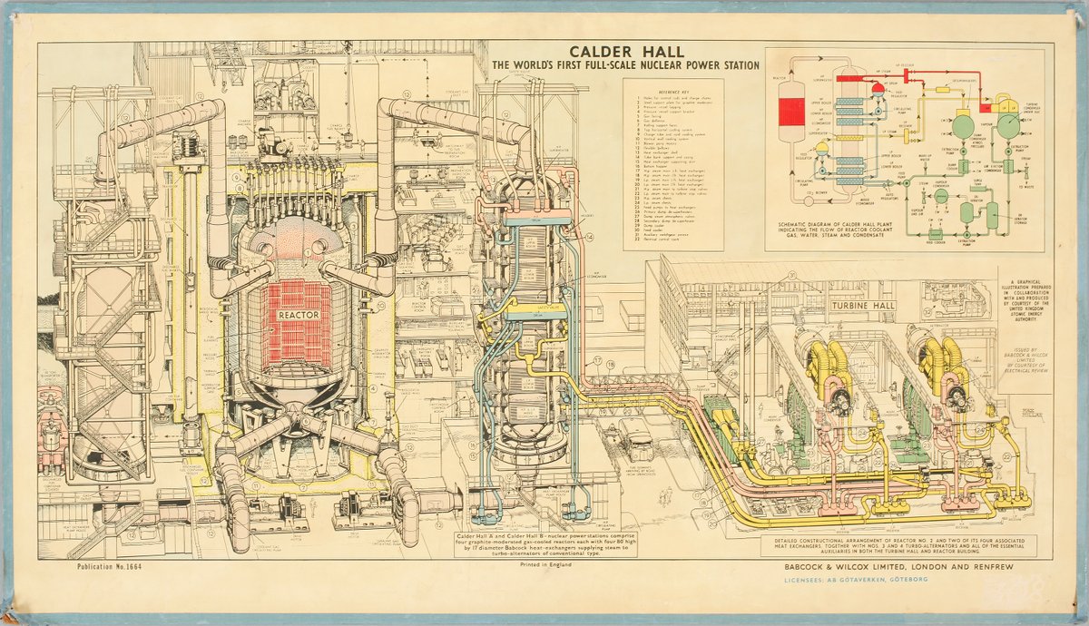 14/ EDF va chercher une autre solution au Royaume-Uni…En effet, dans le même temps, les Britanniques réalisent un réacteur à Calder Hall (images) et optent pour un chargement vertical disposé dans un caisson cylindrique en acier (comme à Shippingport (USA)).