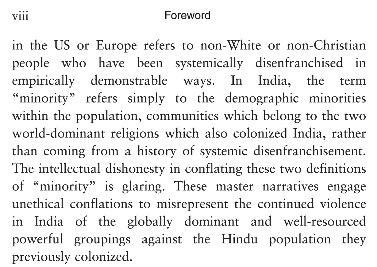 In the Foreword to the #DelhiRiots2020 book I point out how even the term "minority" from European history is mis-mapped from India, to deny the violence against so-called "majority" Hindus by their prior colonizers. A shout out to @indumathi37 for her editing help in this.