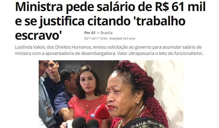 Foi a "Justiça Social" que produziu a ministra Luislinda - quem lembra dela? - que queria acumular sua aposentadoria de R$ 30 mil com o salário do cargo de R$ 30 mil, alegando que não permitir isso seria "escravidão".