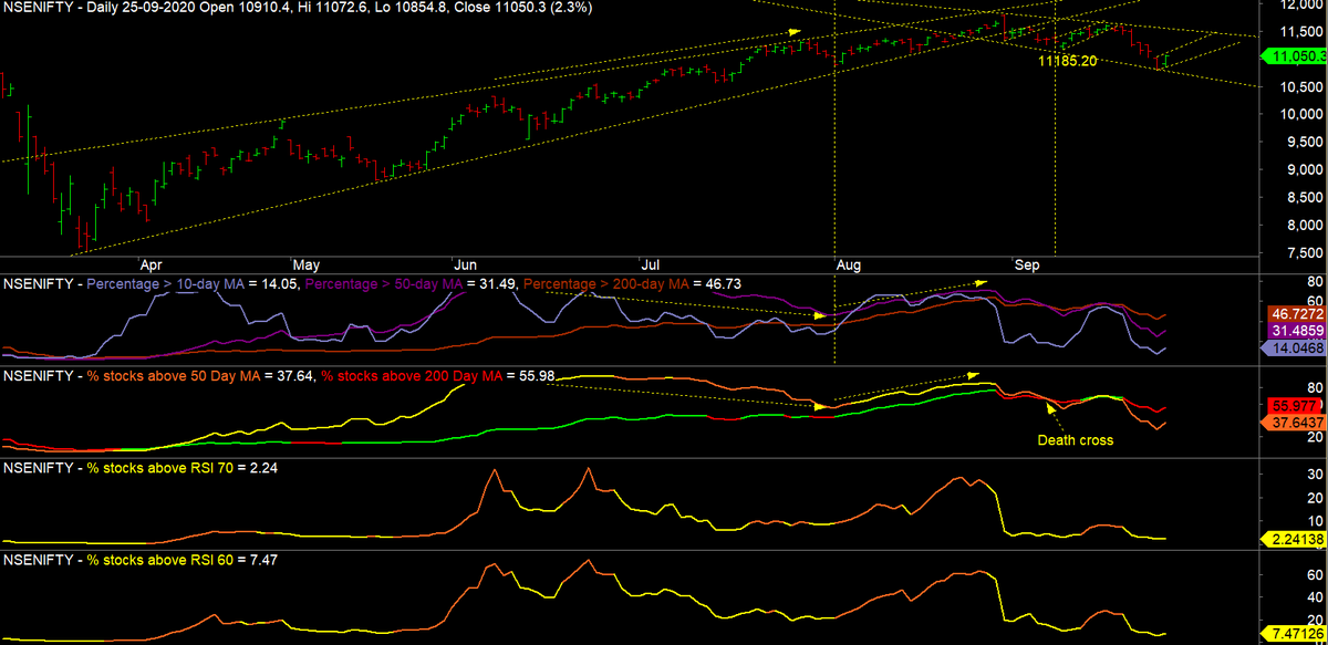 1. Most of the NIFTY50 or biggies r below 50dma and looking to kiss 200dma.