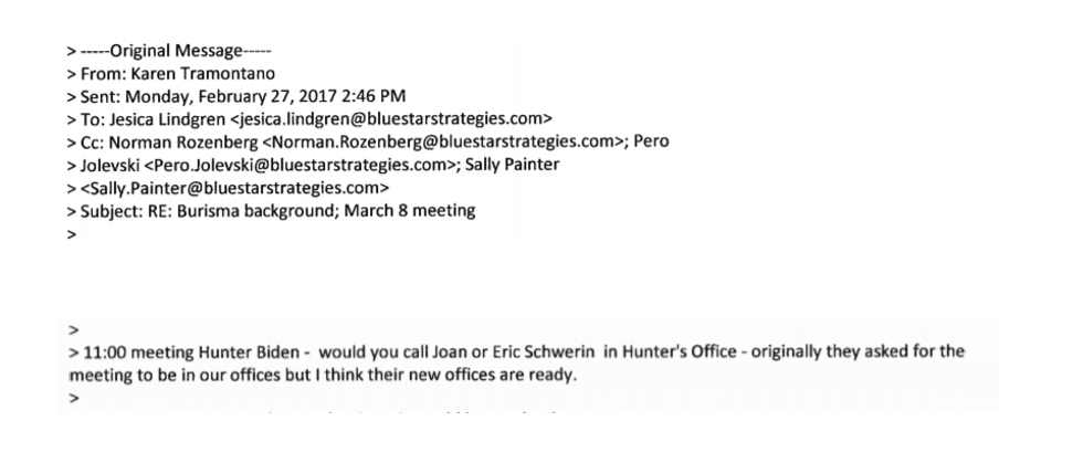 6/ putting the final nail in Tramontano's lying obtuseness about Hunter Biden is a Feb 27, 2017 email in appendix to testimony hsgac.senate.gov/imo/media/doc/…, where she told assistant to call Schwerin at "Hunter's Office", his "new offices" being "ready".