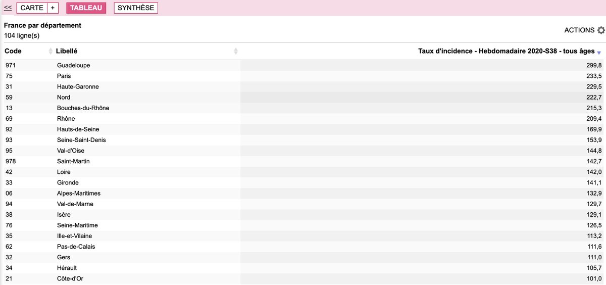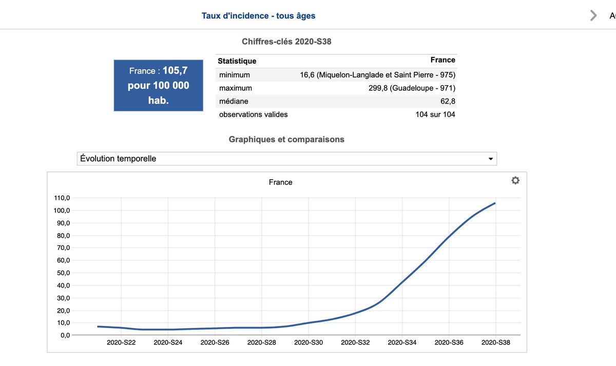 L'incidence en France grimpe à 105,7/100.000, 249 chez les 20-29 ans, et cette incidence est forte chez les plus âgés dans plusieurs départements, notamment outremer et dans le 13.