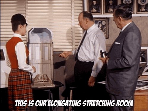Marc Davis showing Walt Disney the stretching portraits from the Haunted Mansion.
