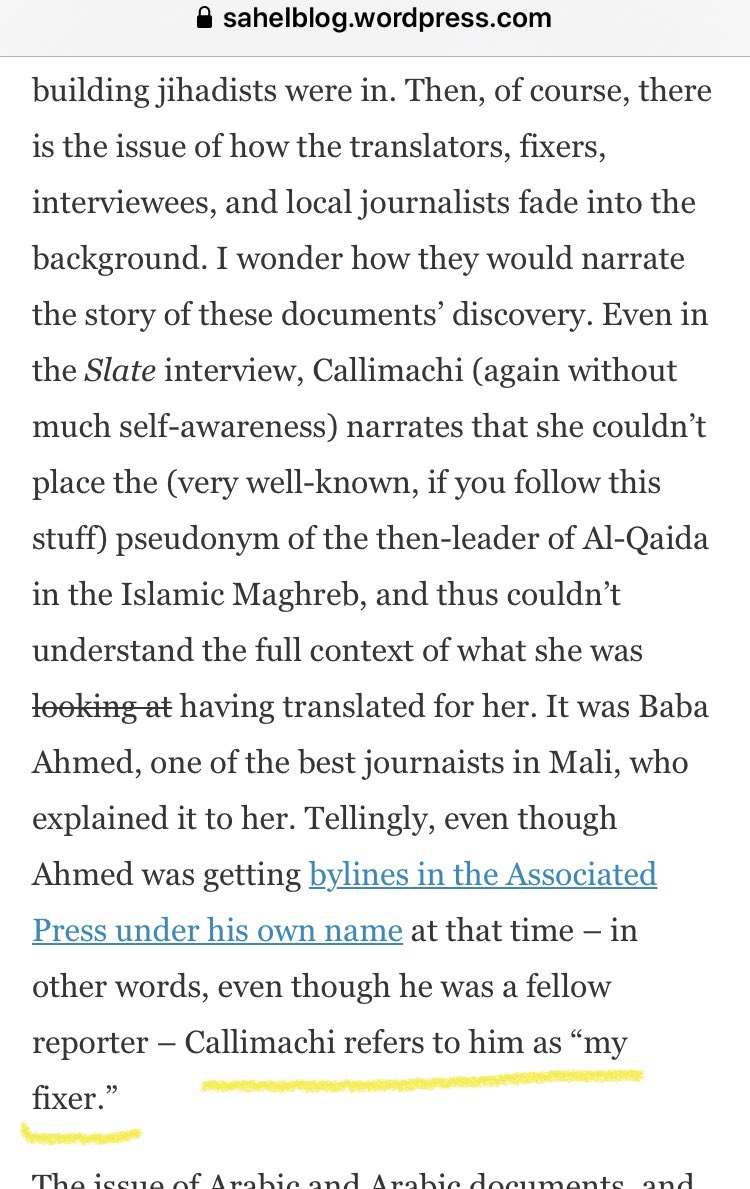 Sadly many foreign correspondents use the work and insights of accomplished local journalists and then call them “my fixer”- that’s an industry problem. Gross