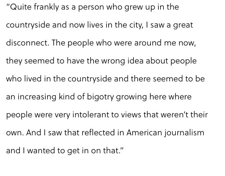 Esp when he seems to be aware of how white urban liberals have not been fair to white “countryside” people - so why is it so hard to understand that we all have biases & as journos esp should examine them.
