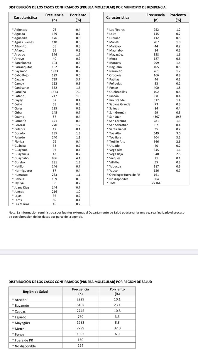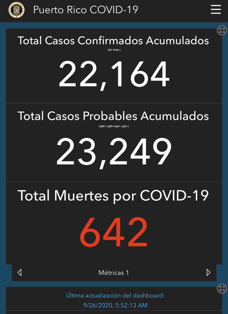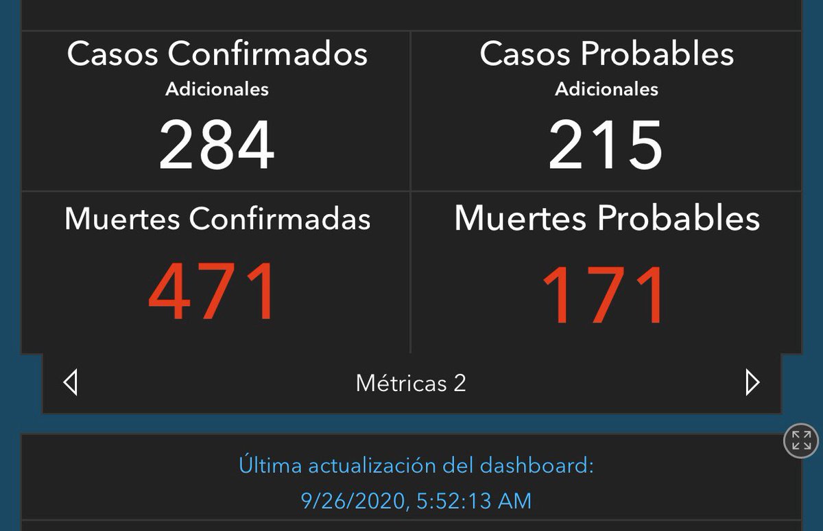 (20/octubre) La muerte confirmada por #COVID19 reportada en el informe de hoy, ocurrió el 18 de octubre. Corresponde a una mujer de 61 años, de la región de Bayamón. #PuertoRico